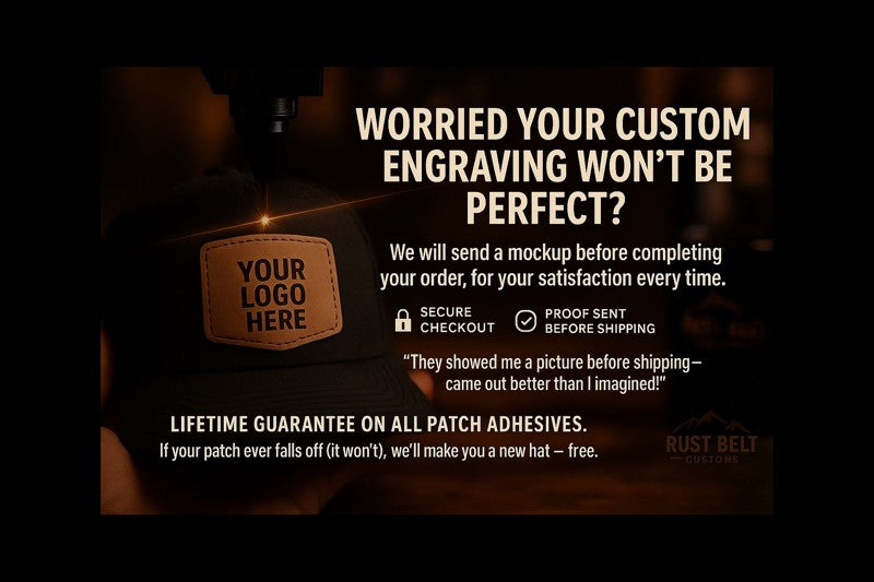 Custom Leather Patch Hats – Laser-Engraved Logos with Lifetime Adhesive Warranty